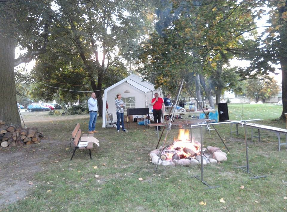 30.09.2016 r. członkowie i przyjaciele LGD „Krzemienny Krąg” wspólnie pożegnali lato. Dzięki uprzejmości właściciela dworku w Rudzie Kościelnej – Pana Leszka Młodożeńca oraz zaangażowaniu Lipskiego Forum Kobiet odbyła się impreza, która na długo zapadnie w naszej pamięci. Zebranych gości przywitał prezes LGD „Krzemienny Krąg” – Pan Jarosław Kuba, który życzył wszystkim udanej zabawy i integracji. Następnie mieliśmy okazję uczestniczyć w wesołej sportowej rywalizacji, którą zapewniła ekipa BubbleFootball Ostrowiec tj. Ewa i Michał. Gra w piłkę, w wielkich dmuchanych kulach przyniosła wiele uśmiechu, tym bardziej, że kolejne spotkania pomiędzy poszczególnymi gminami LGD rozgrywane były przy coraz szybciej zapadającym zmroku. Na zmęczonych zawodników i ich kibiców czekały pyszności przygotowane przez Restaurację „Pod Pretekstem” z Lipska. Zgromadzeni goście mieli okazję skosztować kiełbasek i kaszanki z grilla, pierożków z mięsem z dzika, bigosu, pieczonego dzika oraz wspaniałej szynki i pieczonych ziemniaków. W trakcie imprezy zaprezentowały się również dwa zespoły śpiewacze z terenu Gminy Ćmielów: „Stocaneczka” i „Borianki”, które zaprezentowały utwory ludowe. Gorąca atmosfera towarzyszyła także zabawie tanecznej, którą „Słowem i Muzyką” poprowadził Pan Piotr Wójtowicz. Nie zabrakło wspólnych tańców, korowodów wokół wesoło płonącego ogniska…