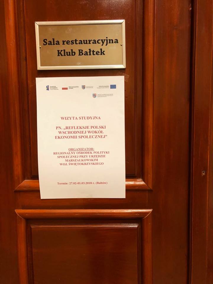 W dniach 27-28.02-01.03. 2018r. Regionalny Ośrodek Polityki Społecznej przy Urzędzie Marszałkowskim z Kielc wraz ze Stowarzyszeniem LGD „Krzemienny Krąg” przywitali w Bałtowie uczestników wizyty studyjnej pn.”REFLEKSJE POLSKI WSCHODNIEJ WOKÓŁ EKONOMII SPOŁECZNEJ”.