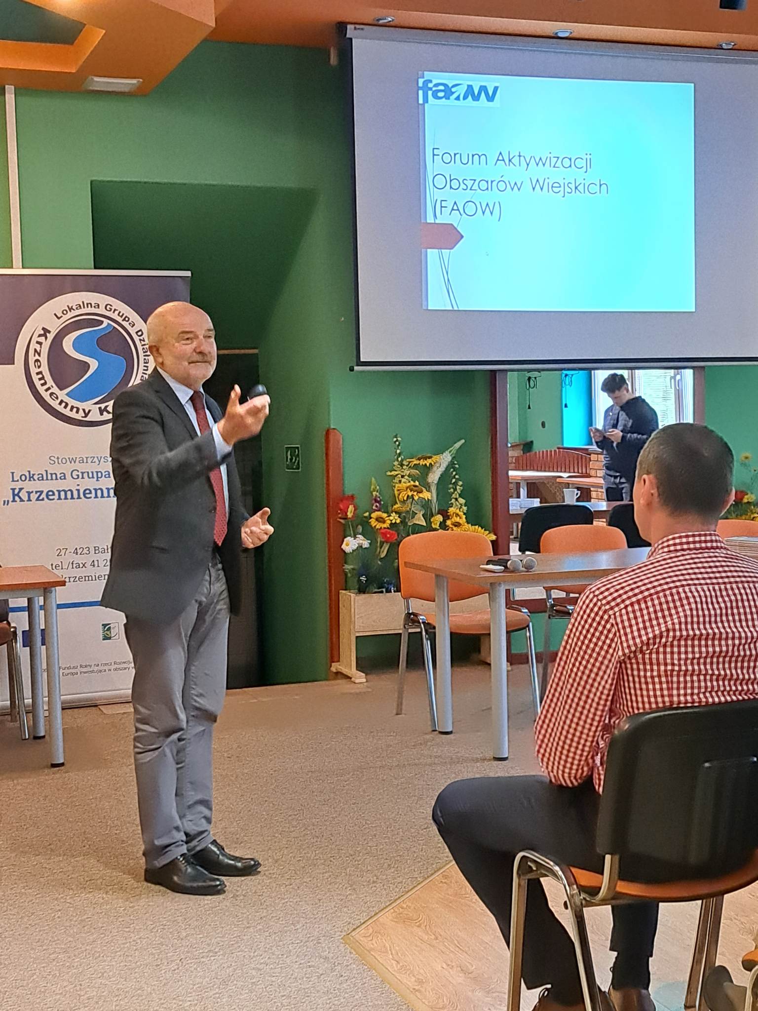 Spotkanie poprowadził dr Andrzej Hałasiewicz – socjolog wsi i ekonomista łączący teorię z praktyką. Wieloletni pracownik Zakładu Socjologii Obszarów Rustykalnych Instytutu Socjologii UMK w Toruniu. Realizator wielu projektów badawczych, między innymi, finansowanych przez Unię Europejską i Fundusz “Know How”.