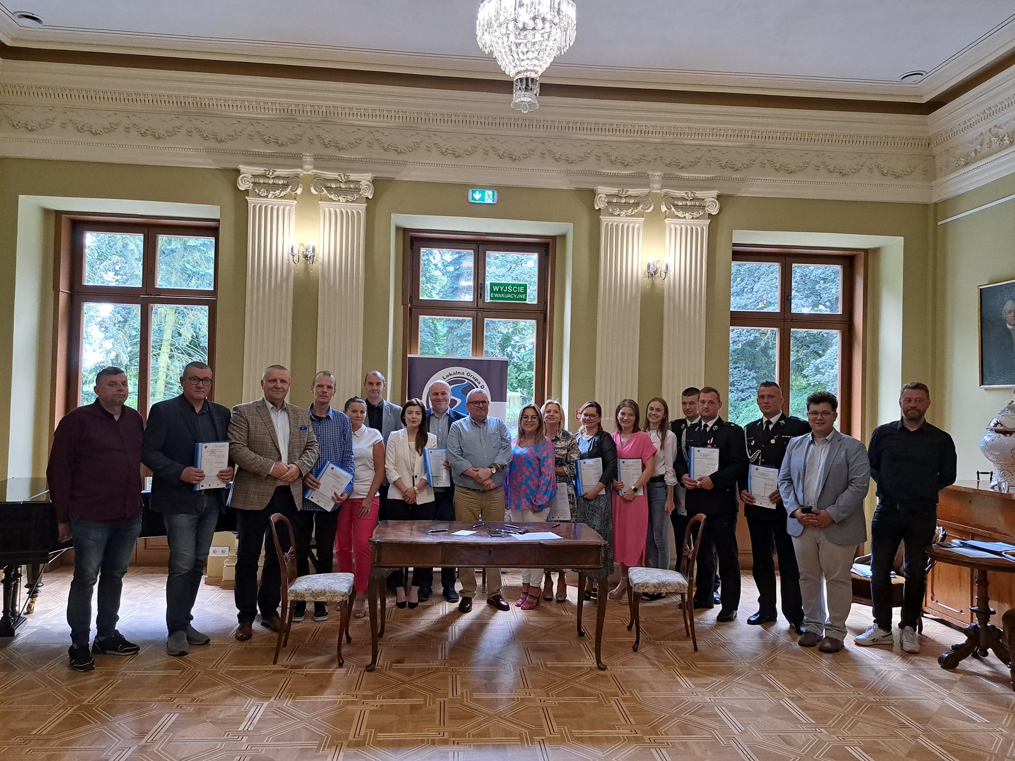 W dniu 04.08.2023, w murach Pałacu Wielopolskich w Częstocicach odbyło się uroczyste podpisanie umów z organizacjami wybranymi w ramach naboru wniosków o przyznanie pomocy w Przedsięwzięciu „Krzemienny Krąg” łączy ludzi. W wydarzeniu udział wzięli Włodarze Gmin z terenu LGD Krzemienny Krąg: Pani Burmistrz Ćmielowa – Joanna Suska, Burmistrz Miasta i Gminy Kunów – Lech Łodej oraz przedstawiciele organizacji: Ochotnicza Straż Pożarna w Solec Nad Wisłą, Gminne Stowarzyszenie Gospodyń Wiejskich w Gminie Bodzechów, Stowarzyszenie Rozwoju Gminy Lipsko, Stowarzyszenie „Przyjazną Gmina Bałtów”, Ochotnicza Straż Pożarna w Chotczy, Stowarzyszenie na Rzecz Rozwoju Boksycki, Koło Gospodyń Wiejskich „Ćmielowianki” w Ćmielowie, Ochotnicza Straż Pożarna w Rzeczniowie, Stowarzyszenie Futurae dla powiatu lipskiego, Fundacja „A kuku” Kuźnia Kultury.