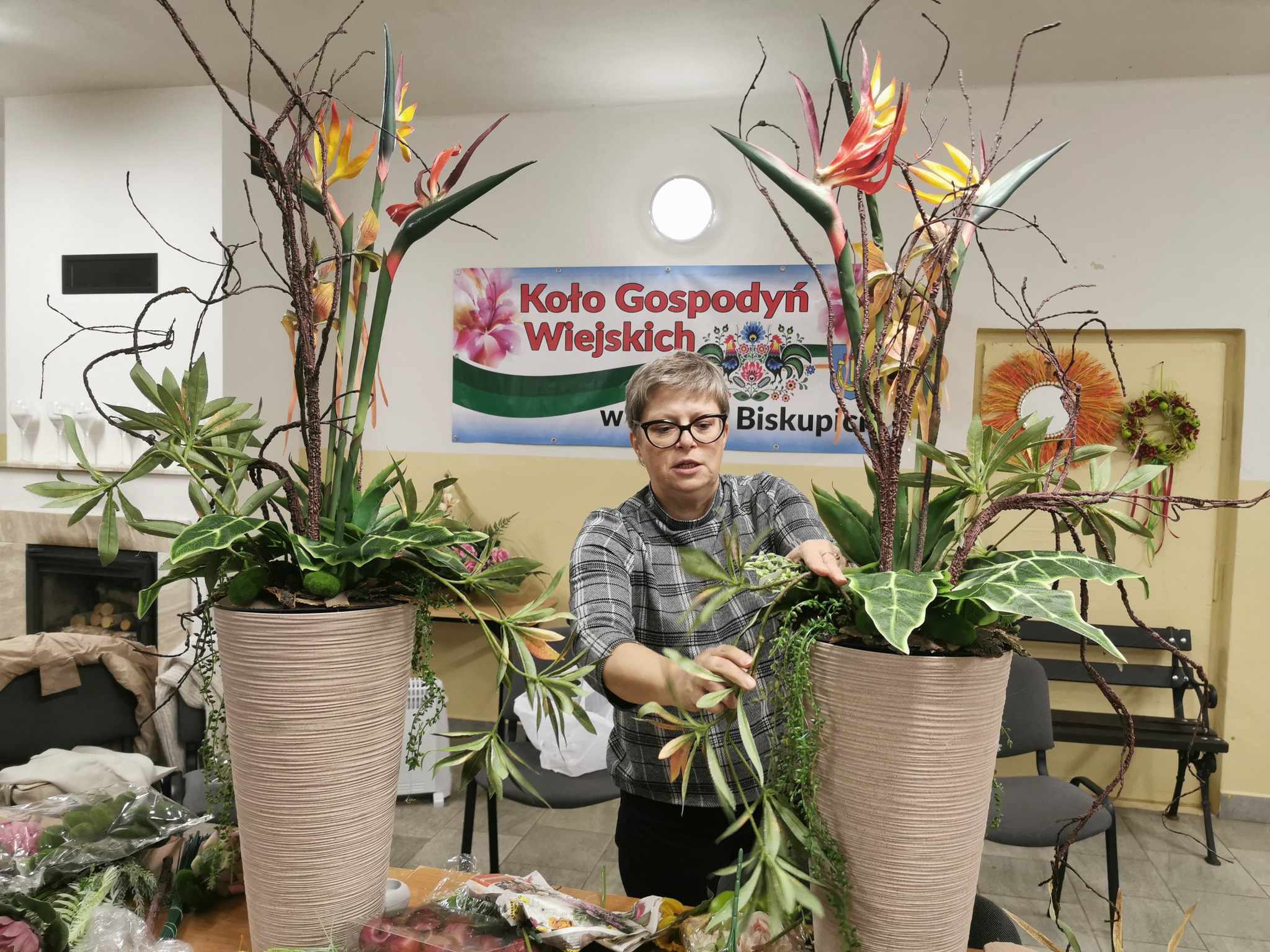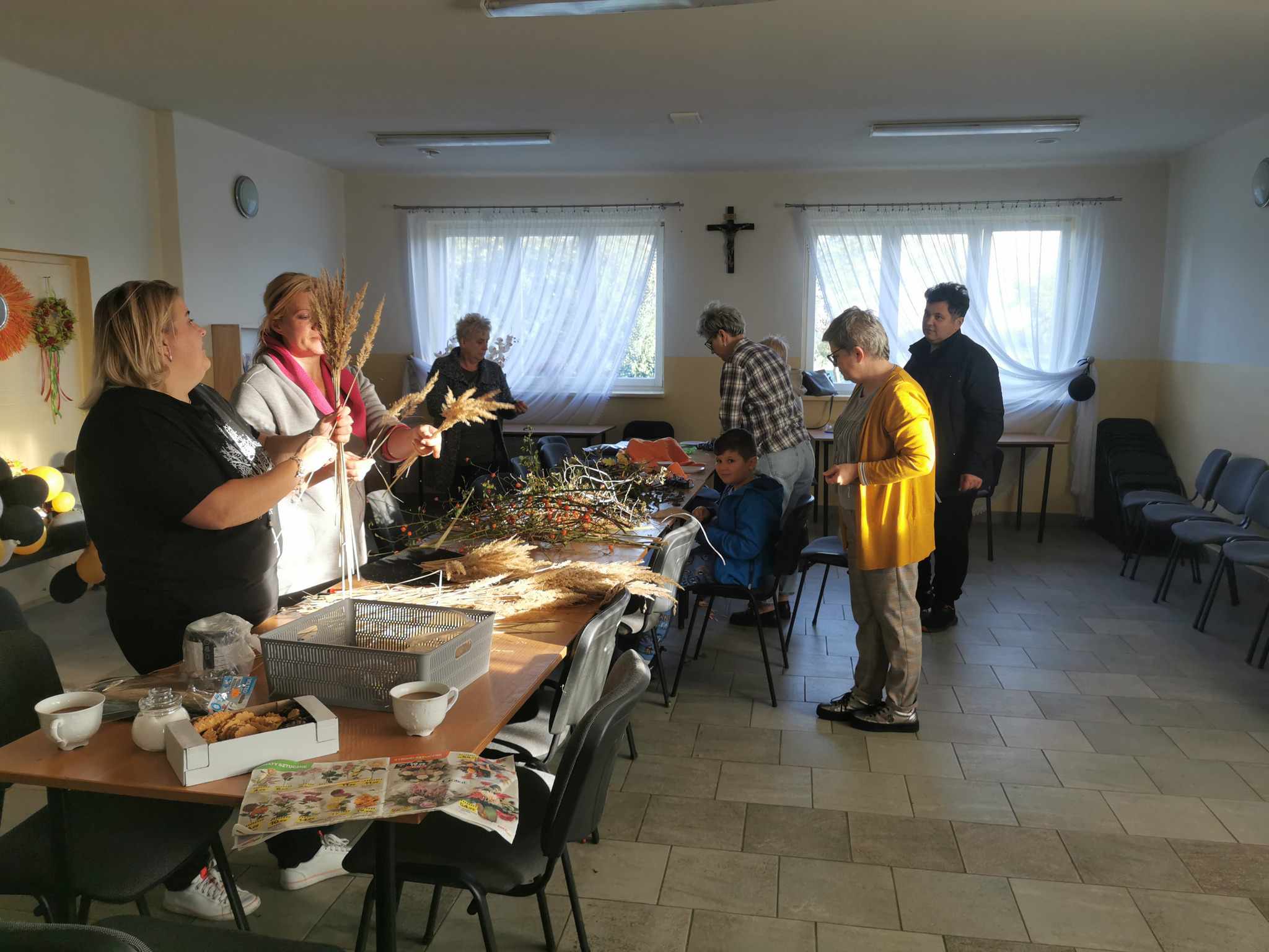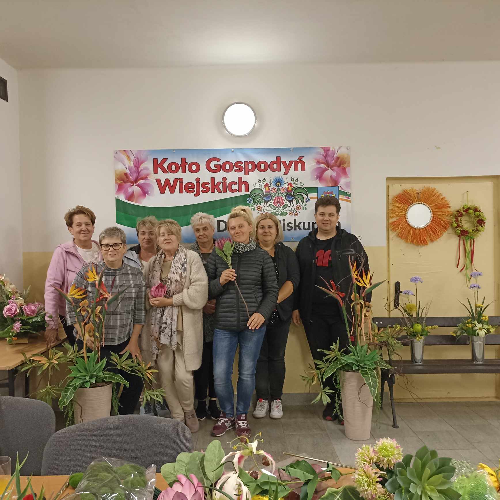 Projekt „Lokalnie Artystycznie”, którego organizatorem jest Stowarzyszenie Lokalna Grupa Działania „Krzemienny Krąg”, tym razem zagościł w Gminie Kunów w miejscowości Doły Biskupie. W dniach 03-10.10.2023 w świetlicy KGW Doły Biskupie odbyła się II edycja warsztatów rękodzielniczych z elementami florystyki. Uczestnikami zajęć byli mieszkańcy Dołów Biskupich. W ramach zajęć, uczestnicy pozyskali wiedzę teoretyczną i praktyczną z układania kompozycji kwiatowych w zależności od naczynia. Wykonano stroiki z kwiatów sztucznych w naczyniach wysokich, dynie z filcu, zaś z suchych kwiatów i traw wykonano wachlarze i lusterko, które ozdabiać będą ściany siedziby świetlicy Koła. Wiedza i umiejętności pozyskane podczas zajęć, uczestnicy warsztatów wykorzystają na pewno w tworzeniu kompozycji własnych.