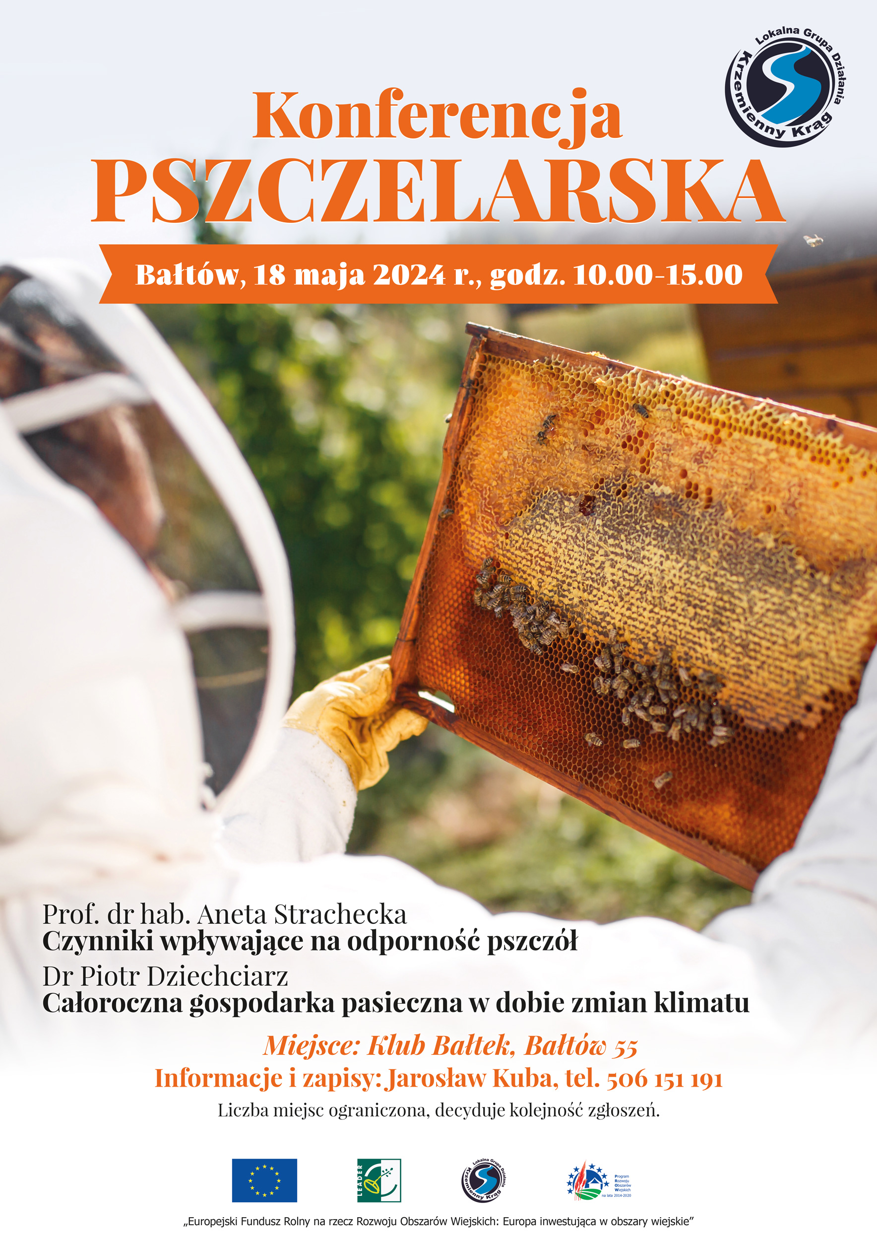 Stowarzyszenie Lokalna Grupa Działania „Krzemienny Krąg” serdecznie zaprasza na Konferencję pszczelarską, która odbędzie się 18.05.2024 r. w godzinach 10.00-15.00 w Bałtowie, Bałtów 55, Klub Bałtek. Zapraszamy do zapisów, ilość miejsc ograniczona.