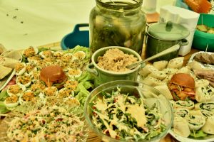 Jednym z głównych punktów programu była część kulinarna przygotowana przez kadrę naszej organizacji. Stowarzyszenie LGD Krzemienny Krąg zadbało o smaczny poczęstunek – każdy z uczestników mógł skosztować nie tylko kiełbasek z grilla, ale także różnorodnych mini przekąsek, które cieszyły się ogromnym powodzeniem. Ponadto, w ramach współpracy z lokalnymi Kołami Gospodyń Wiejskich, Klubami Seniora goście wzbogacili kulinarną ofertę imprezy o własne wyroby. Dzięki temu można było spróbować różnorodnych potraw i wypieków, co dodatkowo podkreśliło charakter spotkania.