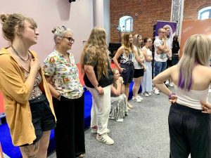 Pierwszy warsztat skierowany był do wolontariuszy i wolontariuszek, a dotyczył kształtowania postaw antydyskryminacyjnych. Osoby uczestniczące miały okazję zastanowić się nad sytuacjami, w których same wykluczały i doświadczały wykluczenia oraz z trudnymi emocjami, które takim wydarzeniom towarzyszą.