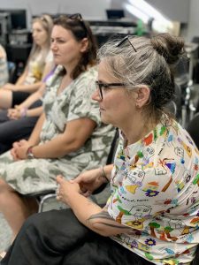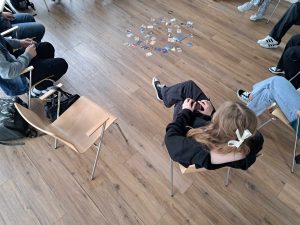 Pierwszy warsztat skierowany był do wolontariuszy i wolontariuszek, a dotyczył kształtowania postaw antydyskryminacyjnych. Osoby uczestniczące miały okazję zastanowić się nad sytuacjami, w których same wykluczały i doświadczały wykluczenia oraz z trudnymi emocjami, które takim wydarzeniom towarzyszą.