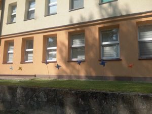 Jeśli myśleliście, że Stowarzyszenie LGD „Krzemienny Krąg” wraz z Centrum Wolontariatu w Ostrowcu Św. udało się na wakacje, to się mylicie. Wakacje były dla nas pracowitym okresem. W ramach wakacyjnych prac wolontariusze stworzyli coś, o czym dzieciom z Ostrowieckiego Szpitala Wielospecjalistycznego, się nie śniło. Dzięki pomocy artystów z naszego miasta, wolontariuszy, jak również przychylności władz Szpitala oraz Powiatu Ostrowieckiego udało nam się stworzyć coś, co od dnia dzisiejszego będzie cieszyło twarze nie tylko małych pacjentów Szpitala. W ramach Centrum Wolontariatu oraz projektu „Bądźmy razem – Wymiennikownia pomysłów” realizowanego przez LGD „Krzemienny Krąg”(projekt finansowany z środków NIW-CRSO), stworzyliśmy piękny mural bajkowy, połączony z instalacją artystyczną. W wakacyjne środy, podczas Festiwalu Wielki Ogień powstawały wiatraczki, które zawisły i ozdobiły plac przy oknach oddziału pediatrycznego. W ramach tygodniowego cyklu „Lato rusza wolontariusza” grupa ludzi spotykała się, aby te instalacje złożyć i zamontować (były również prace na wysokościach – tutaj prym wiodła nasza koordynatorka Daria, za prace na ziemi odpowiadała Paulina). Nie pozostaje nam nic innego jak zaprosić Państwa do naszej fotorelacji, ale chyba nic nie zastąpi tego, aby samemu przyjechać i to obejrzeć.