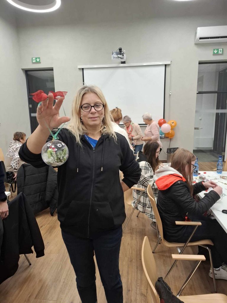 Przygotowane podczas warsztatów ozdoby w tym roku będą tworzyły piękne tło do rozświetlenia choinki, natomiast w późniejszych latach będą zdobiły świątecznie nasze Centrum Społecznościowe. W zajęciach wzięło udział prawie 50 osób z różnych grup wiekowych, od młodzieży po seniorów. Był to ciekawie i relaksująco spędzony czas.