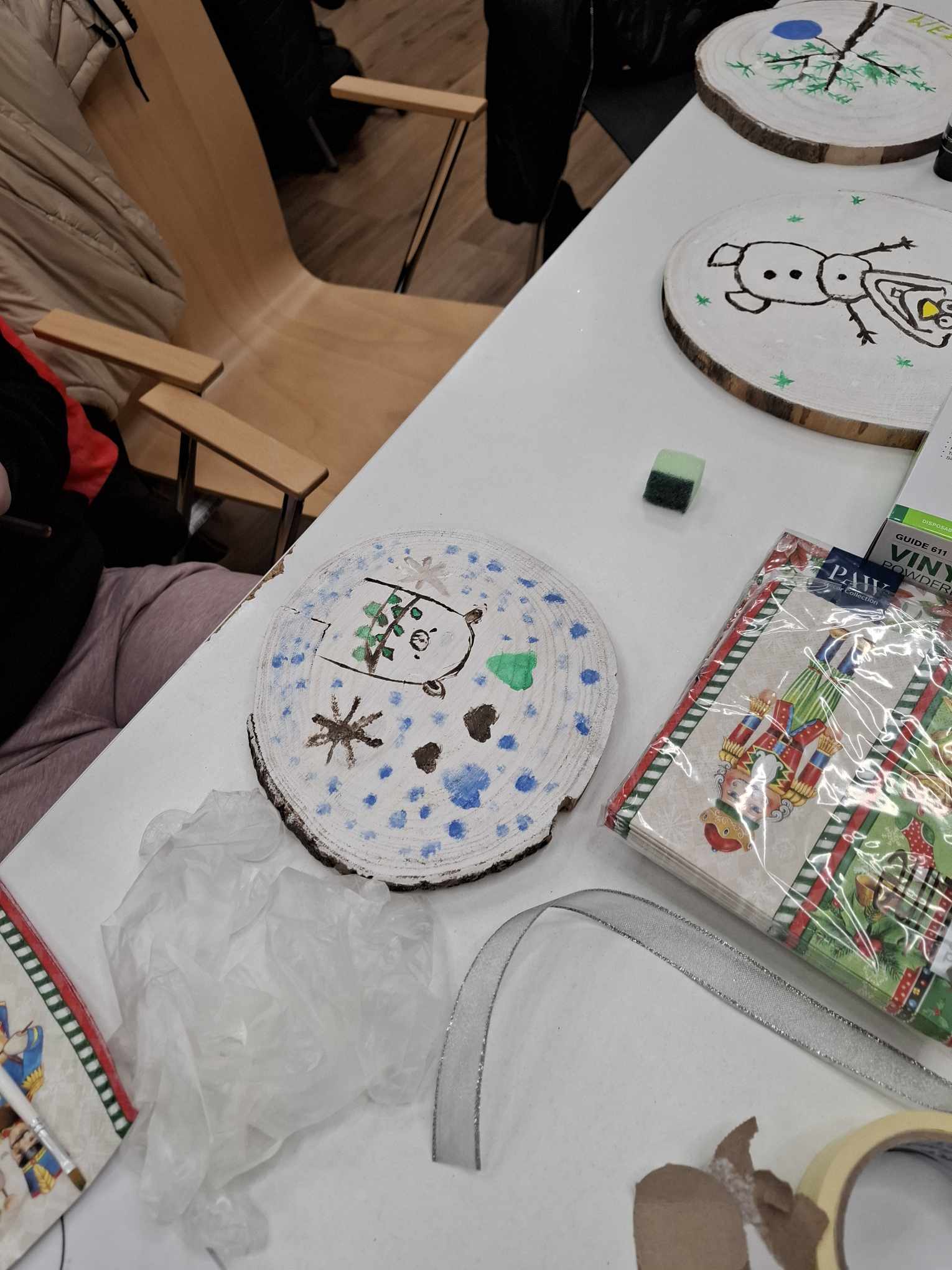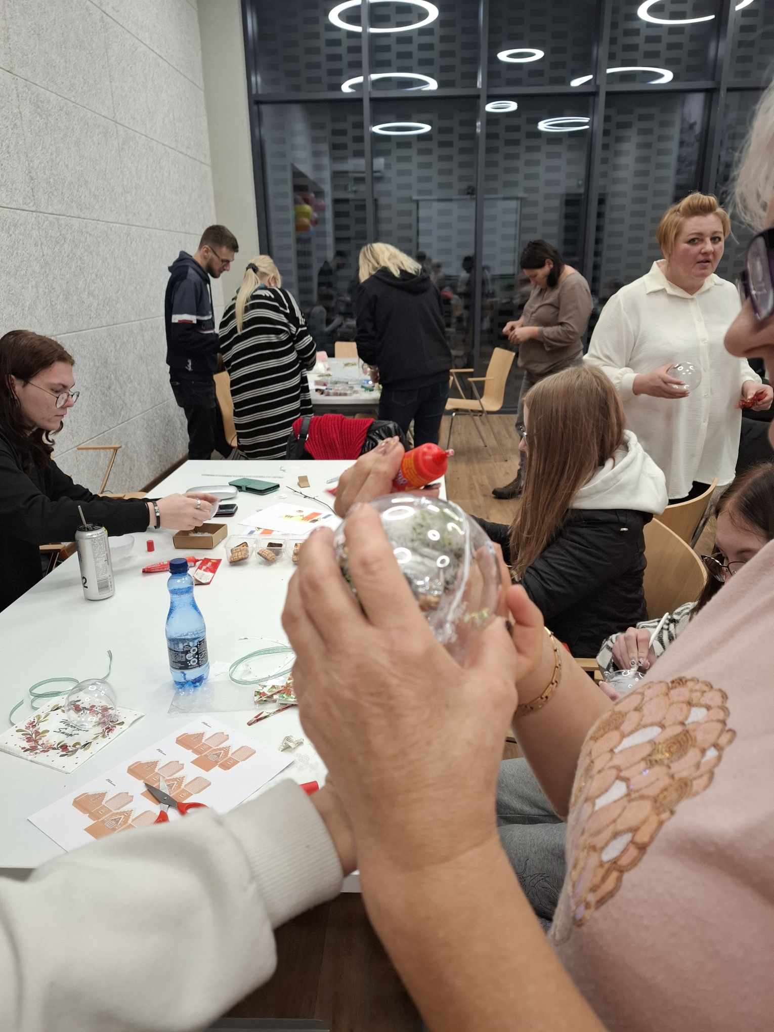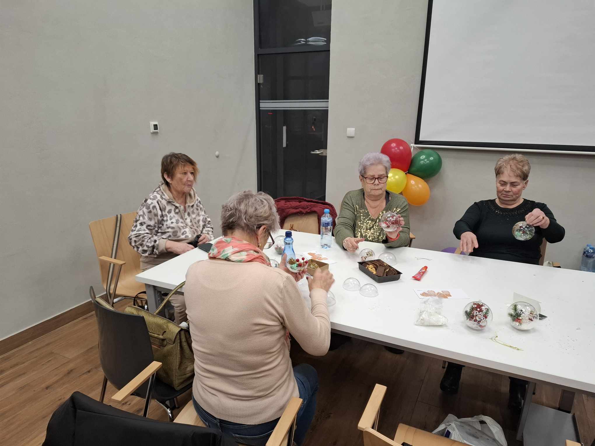 Przygotowane podczas warsztatów ozdoby w tym roku będą tworzyły piękne tło do rozświetlenia choinki, natomiast w późniejszych latach będą zdobiły świątecznie nasze Centrum Społecznościowe. W zajęciach wzięło udział prawie 50 osób z różnych grup wiekowych, od młodzieży po seniorów. Był to ciekawie i relaksująco spędzony czas.