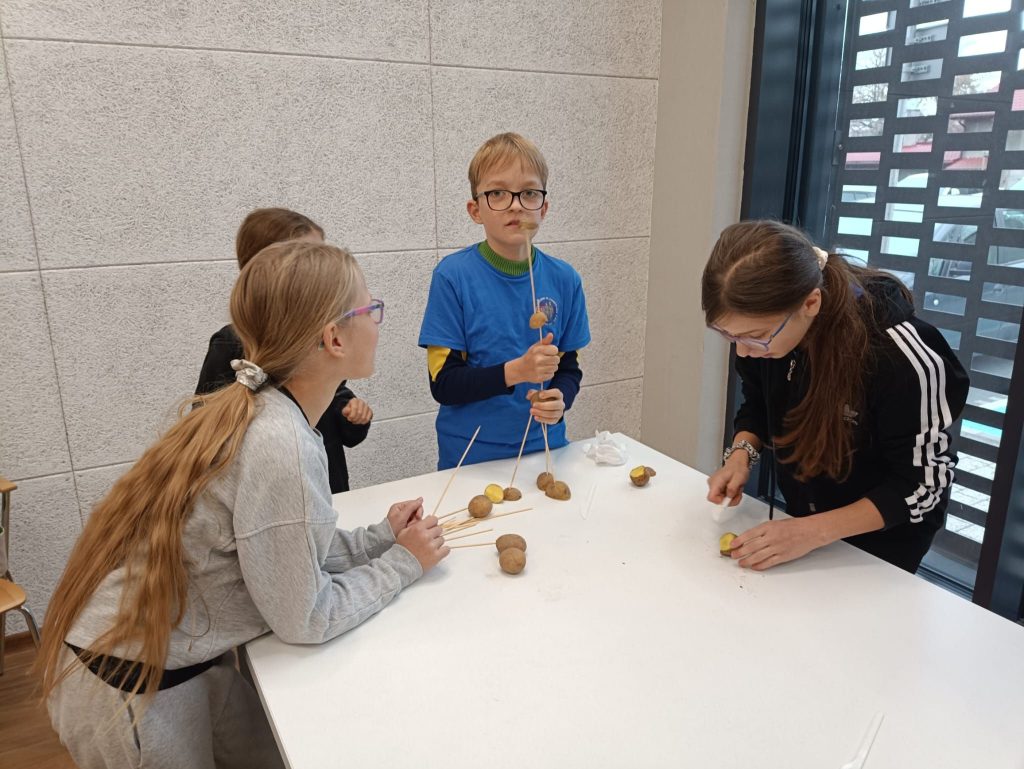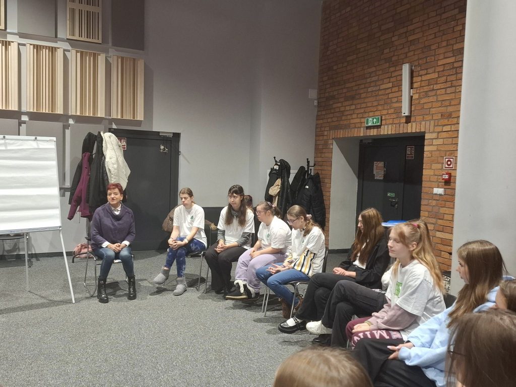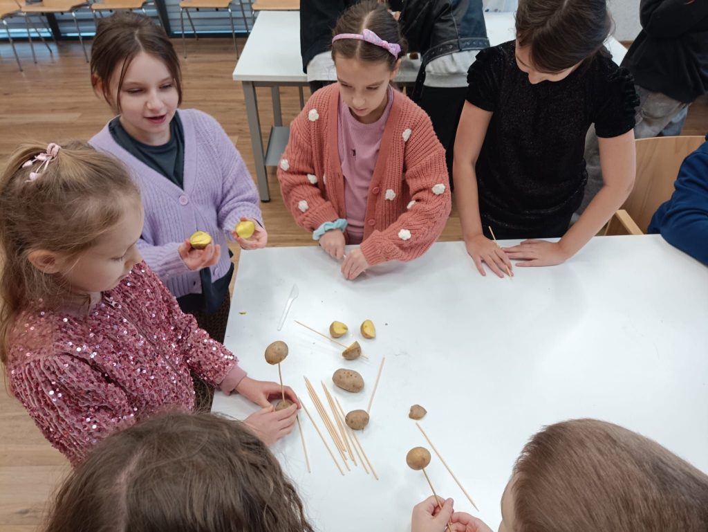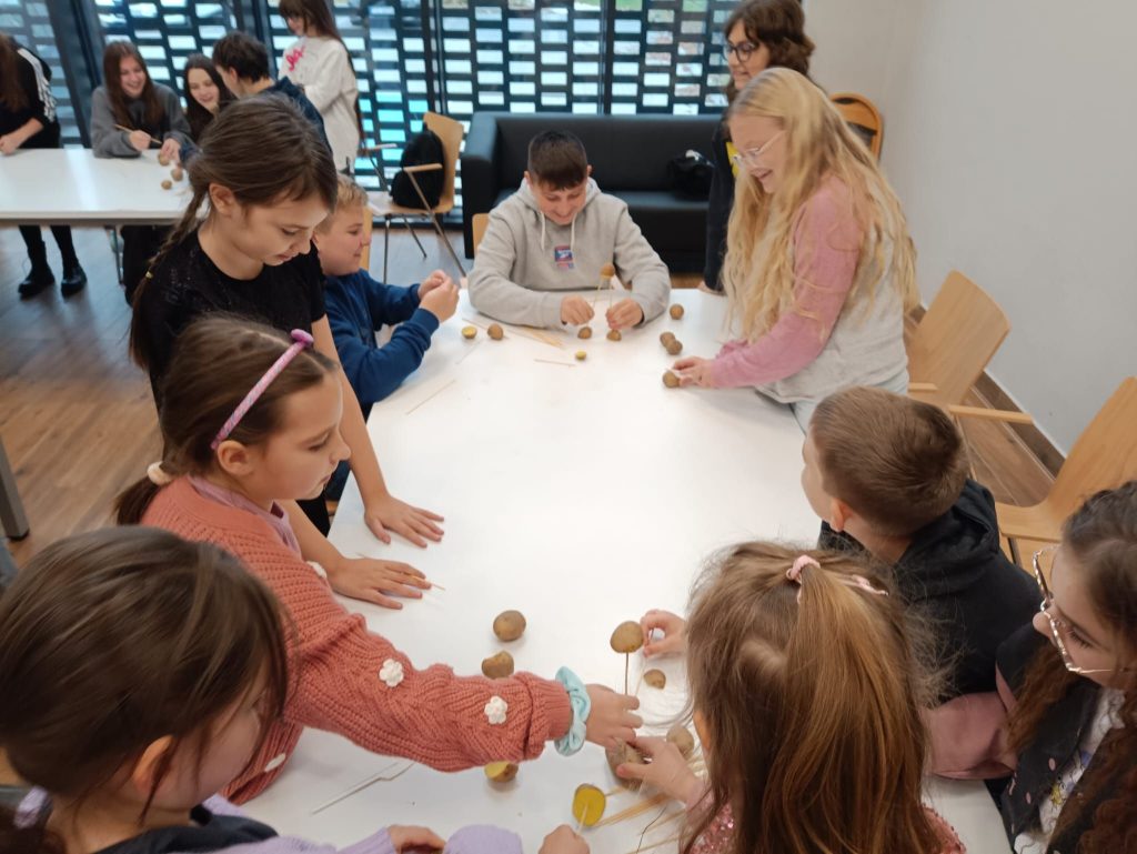 Warsztaty dla koordynatorów SKW poprowadził Jarosław Kuba, były to warsztaty integrujące mające na celu grę w Most na rzece ZULU, młodsza część dzieciaków pod okiem Katarzyny Kozińskiej animowała się za pomocą pracy w grupach. Jednym z zadań było ułożenie jak najwyższej wieży z ziemniaków, przy użyciu ziemniaka i patyków do szaszłyków. Zaś nasza najstarsza młodzież ze Szkół Ponadpodstawowych uczyła się jak walczyć ze stresem i jak się nie wypalić. Warsztaty poprowadziła Pani Anna Pytlakowska.