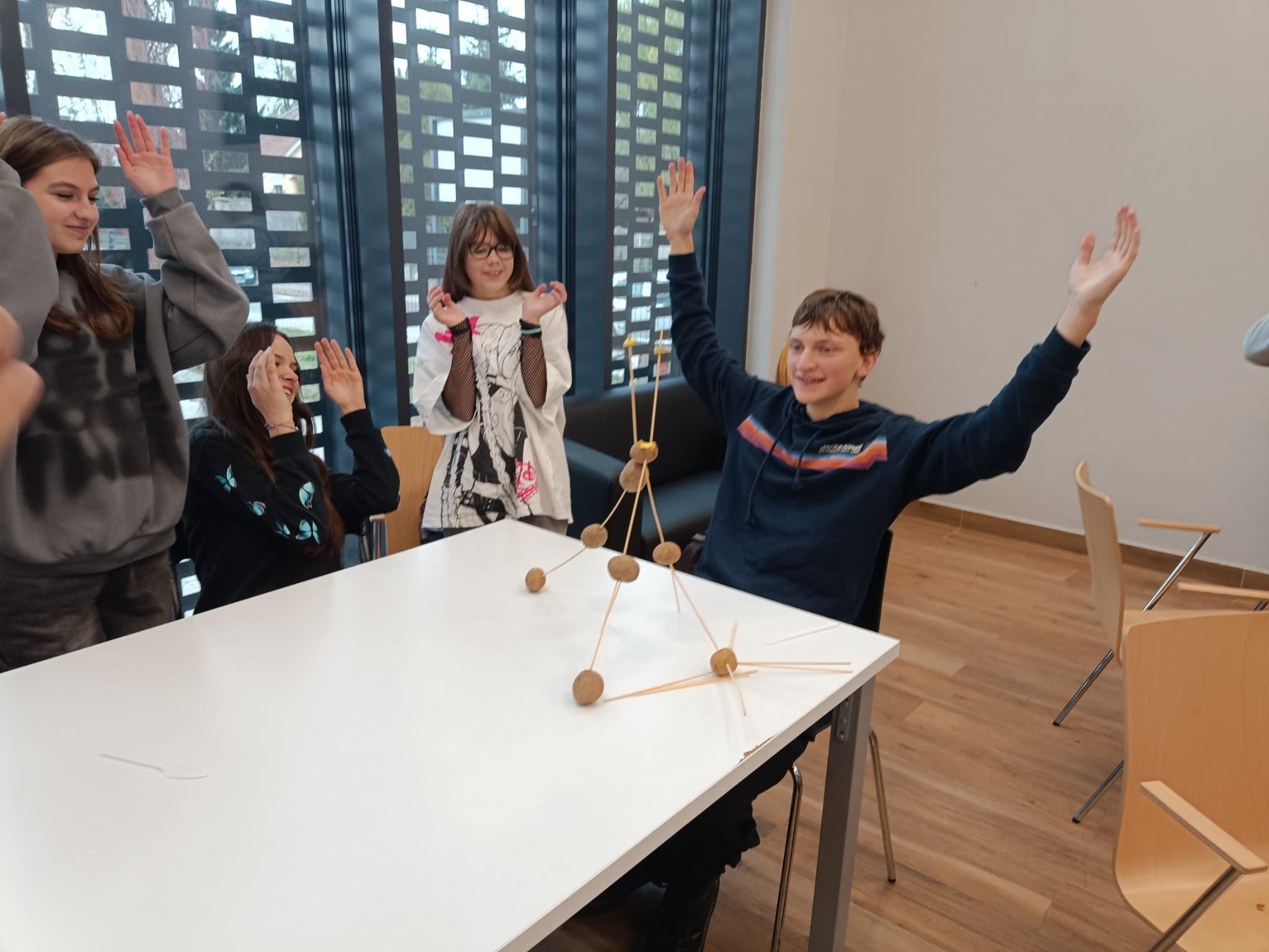 Warsztaty dla koordynatorów SKW poprowadził Jarosław Kuba, były to warsztaty integrujące mające na celu grę w Most na rzece ZULU, młodsza część dzieciaków pod okiem Katarzyny Kozińskiej animowała się za pomocą pracy w grupach. Jednym z zadań było ułożenie jak najwyższej wieży z ziemniaków, przy użyciu ziemniaka i patyków do szaszłyków. Zaś nasza najstarsza młodzież ze Szkół Ponadpodstawowych uczyła się jak walczyć ze stresem i jak się nie wypalić. Warsztaty poprowadziła Pani Anna Pytlakowska.