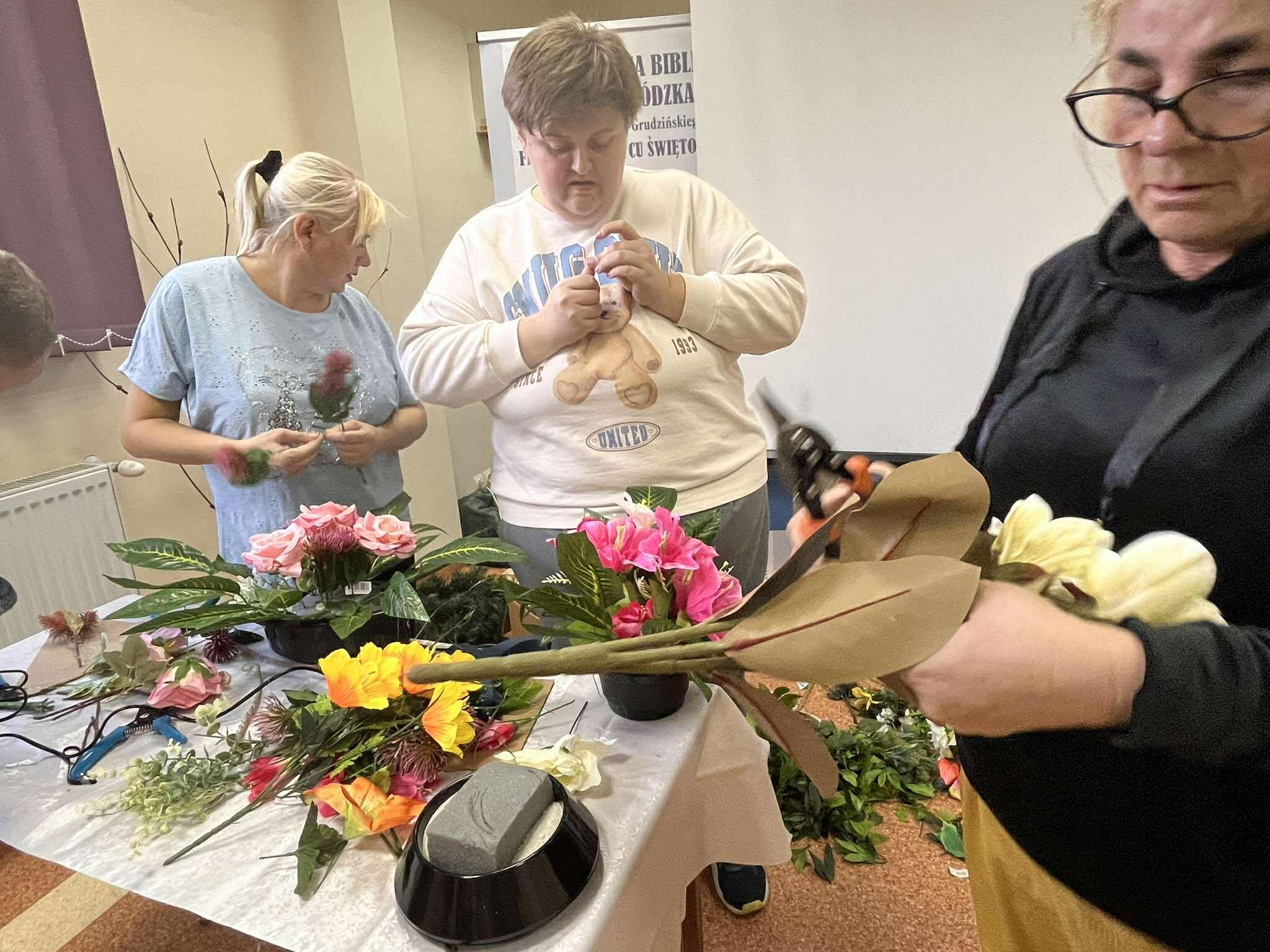 W spotkaniu wzięli udział członkowie wolontariatu działającego przy Centrum Wolontariatu w Ostrowcu Świętokrzyskim – seniorzy, młodzież oraz osoby doświadczające kryzysu bezdomności. Wspólnie tworzyliśmy wiązanki i kompozycje kwiatowe, które już 30 października trafią na groby osób samotnych, NN oraz tych, które znalazły się w kryzysie bezdomności.
