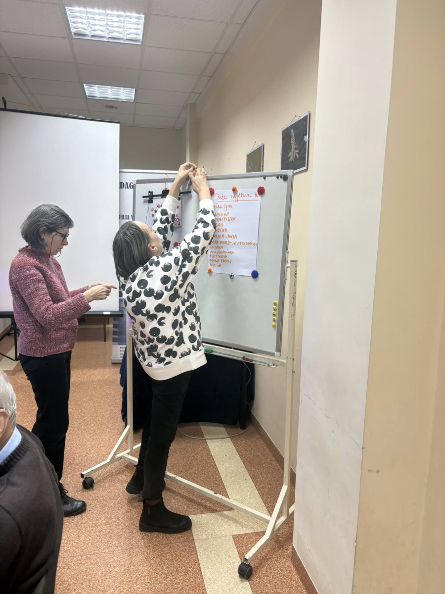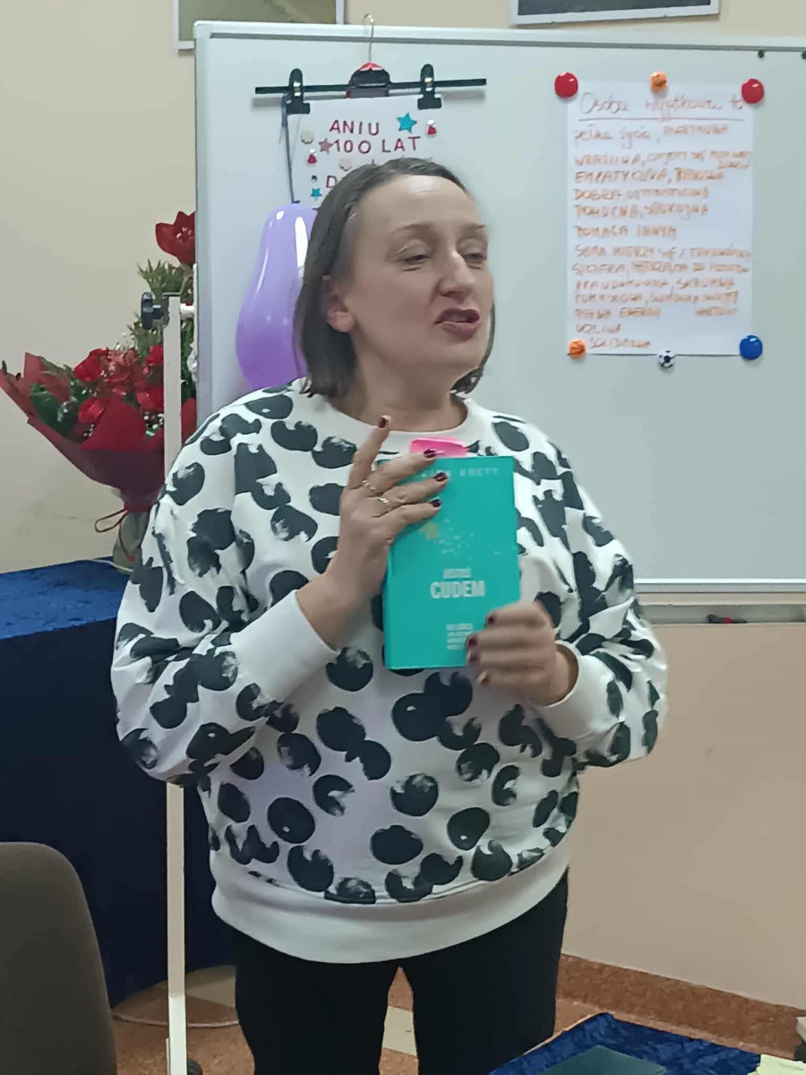 Po tej części przenieśliśmy się w świat biblioterapii. Basia poprowadziła inspirujące i poruszające zajęcia, które pozwoliły nam odkryć, jak wyjątkową wartość ma każdy człowiek i jak głęboko zakorzeniona jest idea pomagania. Warsztaty spotkały się z tak dużym zainteresowaniem, że postanowiliśmy wprowadzić je na stałe do naszego kalendarza. Od początku 2026 r. będziemy spotykać się w każdą ostatnią środę miesiąca, a udział będzie otwarty dla wszystkich chętnych.