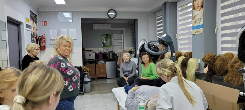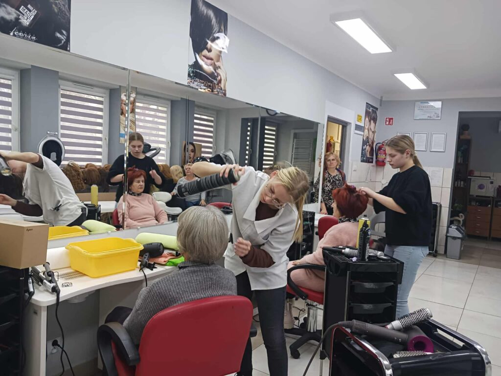 Warsztaty obejmowały zajęcia z dietetykiem oraz praktyczne warsztaty fryzjerskie i kosmetyczne. Seniorzy mieli okazję dowiedzieć się, jak dbać o zdrowie i wygląd na co dzień, a także skorzystać z profesjonalnych zabiegów kosmetycznych i uczesań.