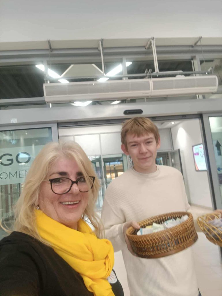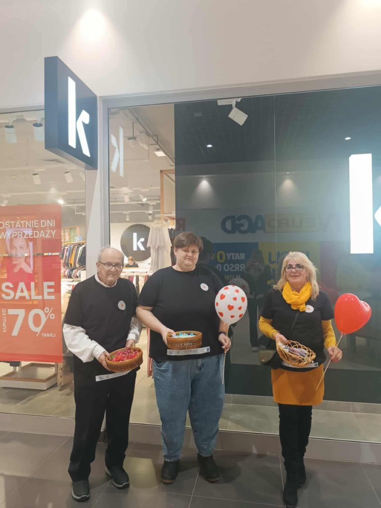Tego dnia nasi wolontariusze rozdawali mieszkańcom nie tylko symboliczne upominki, ale przede wszystkim pozytywną energię i chwilę uwagi. Wśród drobnych prezentów znalazły się breloczki wykonane przez osoby z niepełnosprawnościami ze Stowarzyszenie na rzecz Warsztatu Terapii Zajęciowej „Szansa” oraz własnoręcznie przygotowane zakładki do książek. Każdy z tych przedmiotów miał szczególne znaczenie – był wyrazem zaangażowania, serca i autentycznej radości dzielenia się dobrem.