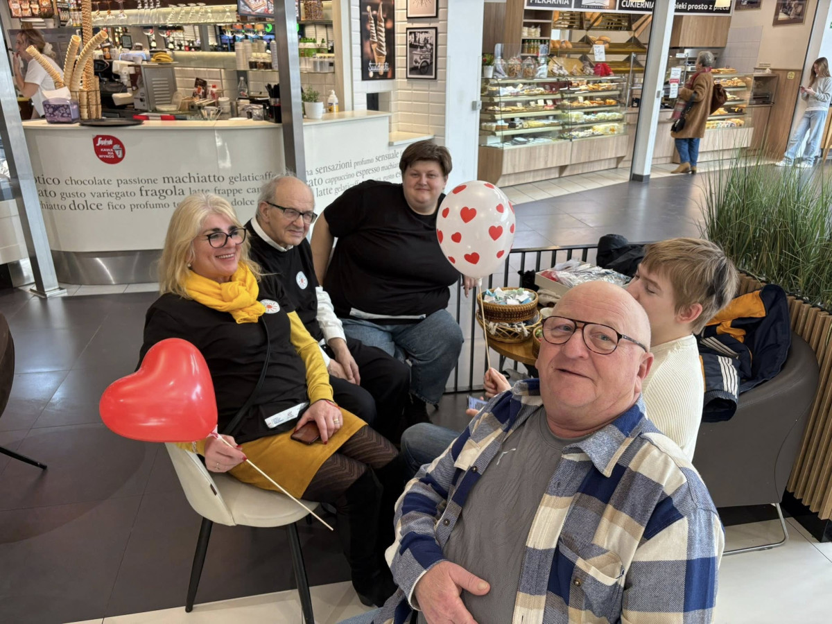 Tego dnia nasi wolontariusze rozdawali mieszkańcom nie tylko symboliczne upominki, ale przede wszystkim pozytywną energię i chwilę uwagi. Wśród drobnych prezentów znalazły się breloczki wykonane przez osoby z niepełnosprawnościami ze Stowarzyszenie na rzecz Warsztatu Terapii Zajęciowej „Szansa” oraz własnoręcznie przygotowane zakładki do książek. Każdy z tych przedmiotów miał szczególne znaczenie – był wyrazem zaangażowania, serca i autentycznej radości dzielenia się dobrem.