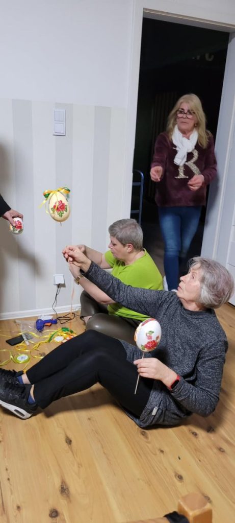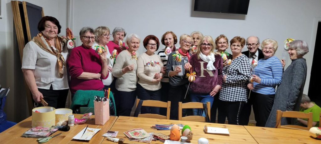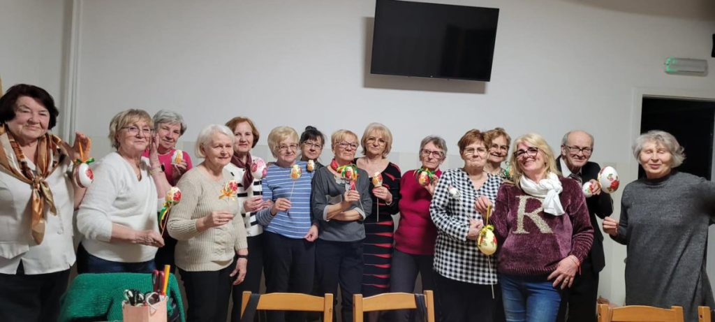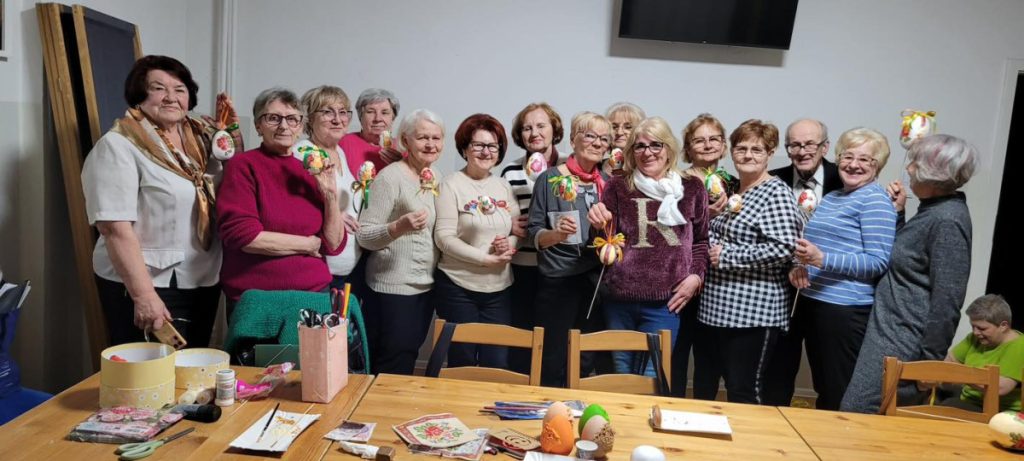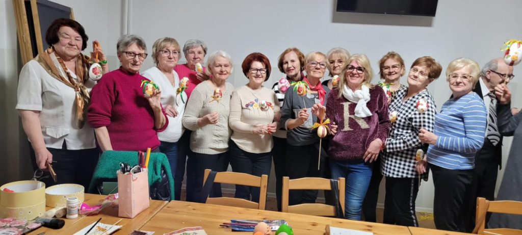 Podczas warsztatów seniorki tworzyły wielkanocne ozdoby – kolorowe jajeczka, które z czasem zamieniły się w prawdziwe małe dzieła sztuki. Spotkanie poprowadziła Agnieszka Budek, która z dużym zaangażowaniem i pasją pokazała uczestniczkom różne techniki zdobienia oraz dzieliła się swoimi pomysłami i doświadczeniem.