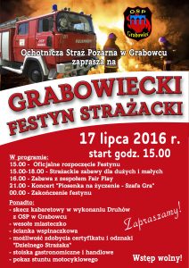 W imieniu organizatorów serdecznie zapraszamy 17 lipca 2016 r. na „Grabowiecki Festyn Strażacki” Więcej
