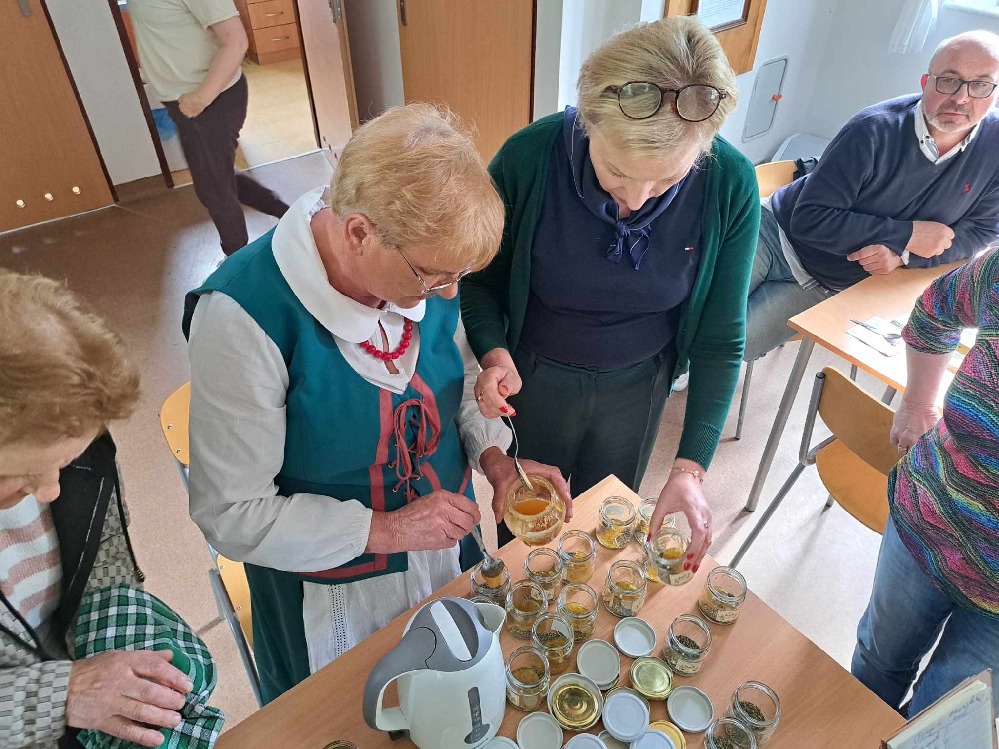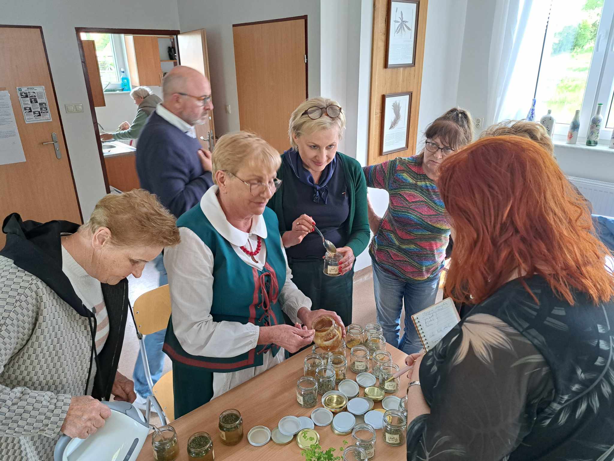 Następnie udaliśmy się do Ziołowej Wsi Blanki, gdzie Pani Lucja przeprowadziła z nami warsztaty zielarskie, opowiedziała o działalności Stowarzyszenia Babki Zielarki oraz o wsi Blanki. Na koniec dnia Pan Łukasz Walerowski przedstawił nam powstanie inkubatora pszczelarskiego, koncepcję jego funkcjonowania, lokalną współpracę pszczelarzy w ramach krótkiego łańcucha dostaw (Jajko i Miód), lokalne koła pszczelarzy. Wieczór zakończył się wspólną biesiadą integracyjną zlokalizowaną w Sali Basztowej Hotelu Krasicki.