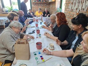 Pierwszego dnia dotarliśmy do Wioski Garncarskiej w Kamionce, gdzie powitał nas Pan Krzysztof Margol, który w bardzo interesujący sposób przedstawił nam genezę powstania wioski tematycznej oraz oprowadził nas po niej. Mieliśmy okazję zobaczyć kuźnię, gospodę, odbyliśmy warsztaty garncarskie z malowania ceramiki. Wizyta była bardzo edukacyjna, jest to świetny przykład wykorzystania potencjału miejsca w celach rozwoju ekonomii społecznej. Następnie udaliśmy się do Hotelu Krasicki, czyli miejsca które powstało w murach dawnego zamku, gdzie częstym gościem był sam Biskup Krasicki.
